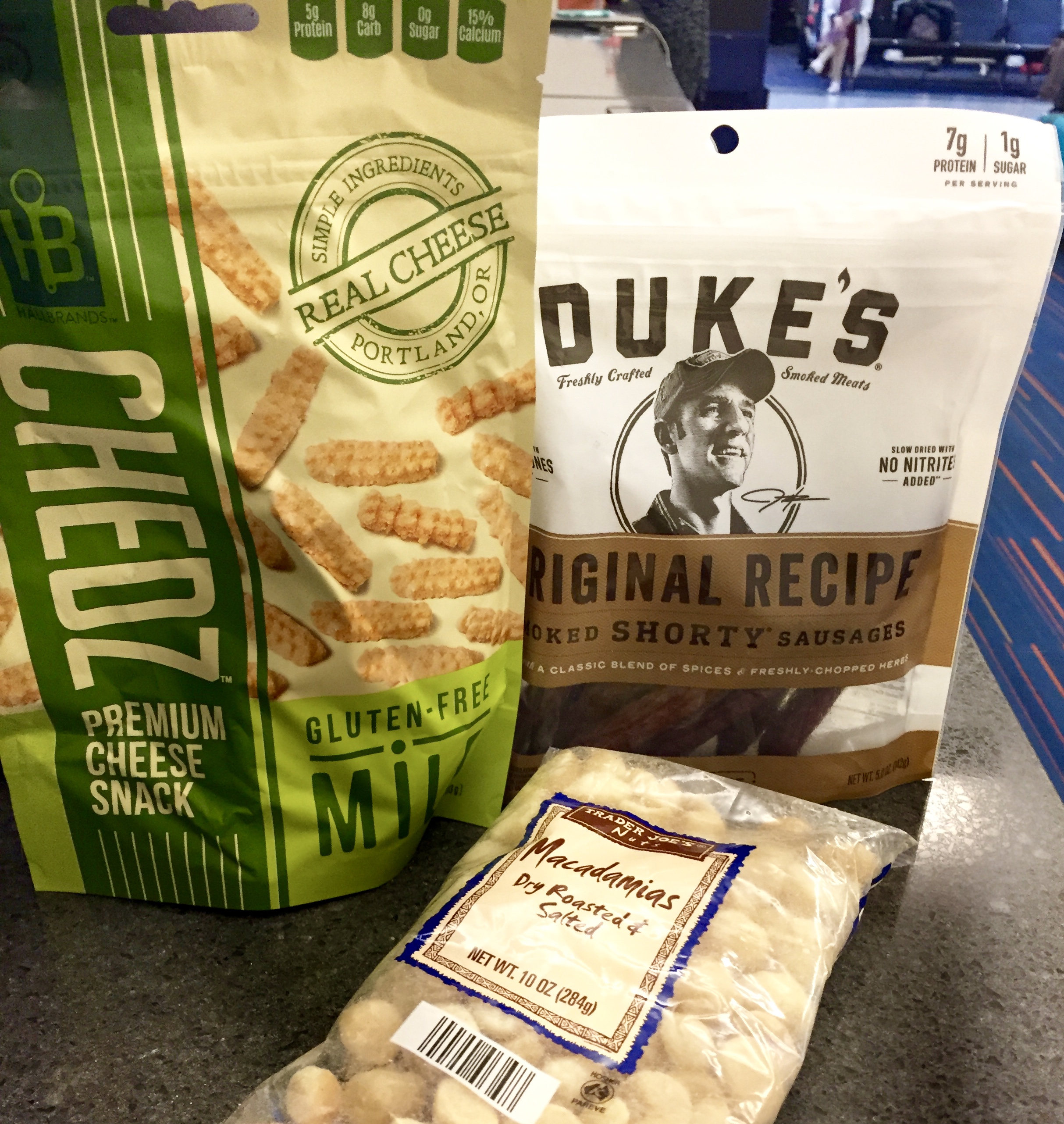 Or pack your own food – I put boiled eggs, Babybel cheese & pepperoni in my Contigo hot/cold travel mug or go “non-perishable” with something like GF Chedz and Duke’s smoked shorty sausages along with TJ’s or Mauna Loa’s Dry Roasted & Salted Macadamias. I’ve even packed a small container of ghee and a travel size Bulletproof Brain Octane Oil to make that GF meal palatable. (You could try asking for real butter – they have it in Business Class!)